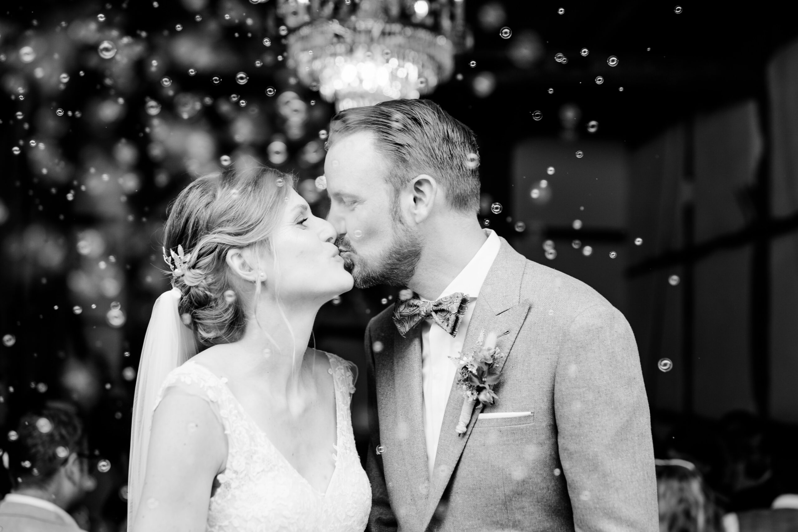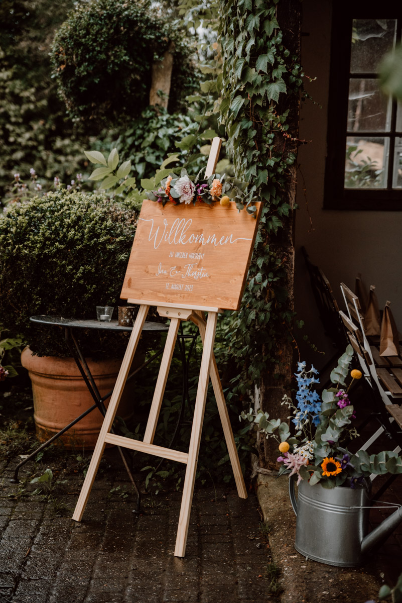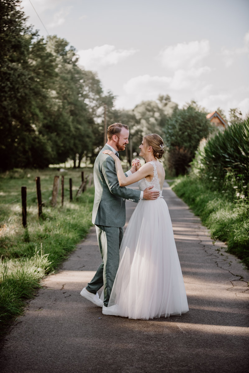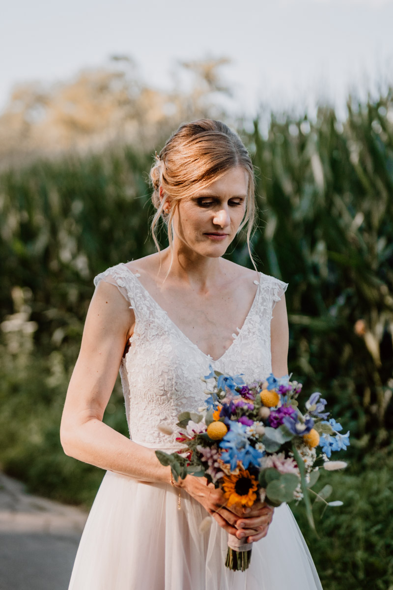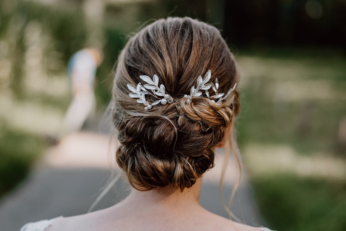Die Braut wünschte sich wegen des warmen Wetters im Nacken zusammengenommene Haare und ein sehr natürliches Make-up.