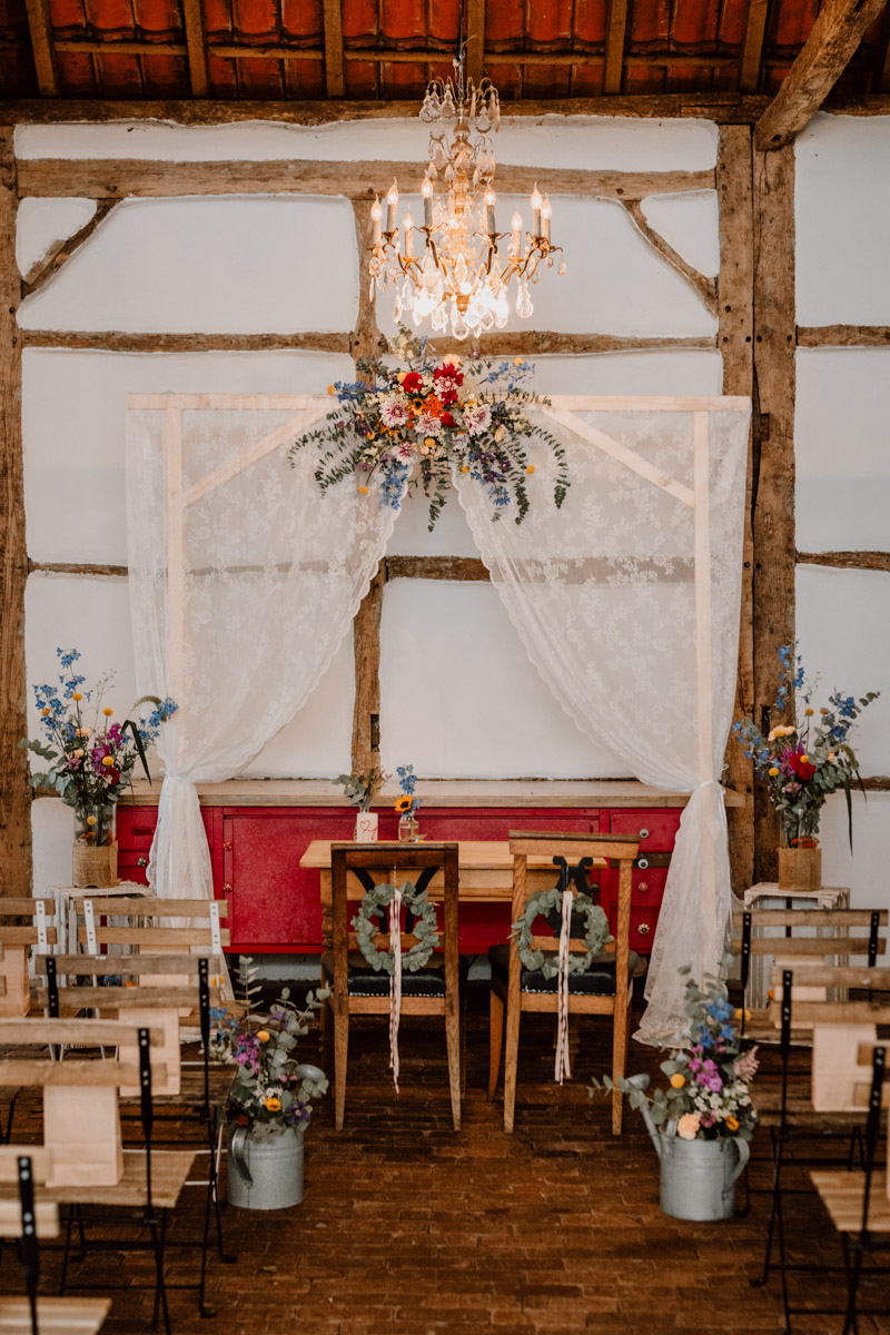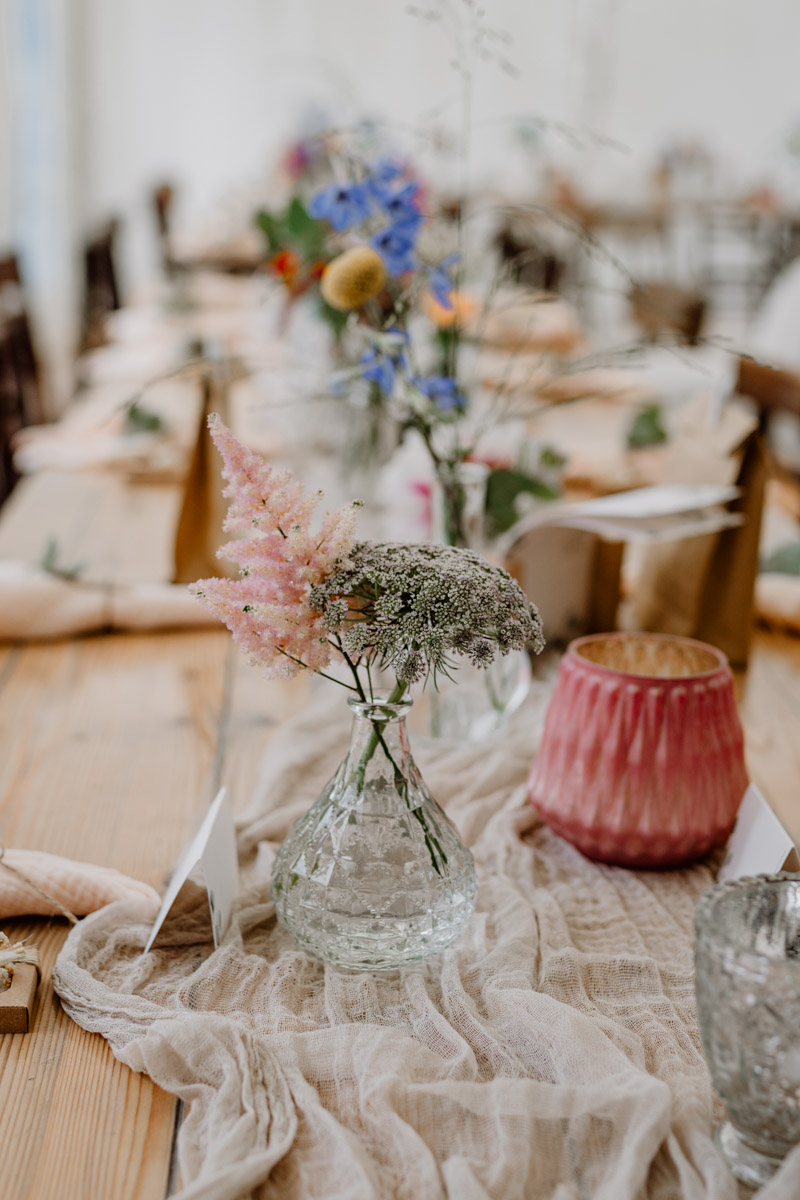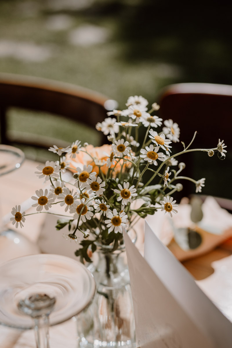 Der hochgesteckte Look ist ideal für lange Feiern und betont mit dem Spitzenkleid von Sana Lindström perfekt die Anmut der Braut – ob bei einer Sommerhochzeit im Freien oder einer Zeremonie in der Kirche. Die schönen Wiesenblumen stammen von Artis Floralis, Lisa Rothstein.