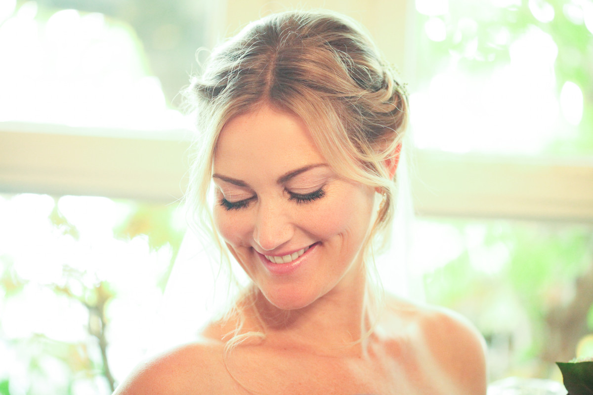 Die Braut wünschte sich einen tiefen Dutt mit eingedrehten Partien, der mit ihrem Schleier harmoniert.