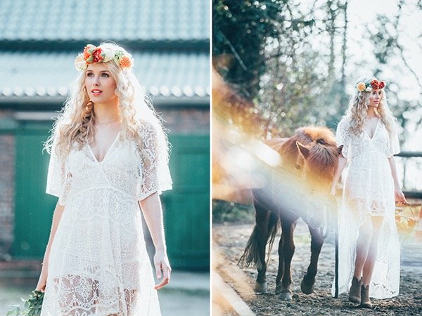 Dieses Styling vereint schlichte Eleganz mit romantischem Boho-Charme und ist die ideale Wahl für Bräute, die auf Natürlichkeit setzen, ohne auf besondere Akzente zu verzichten.