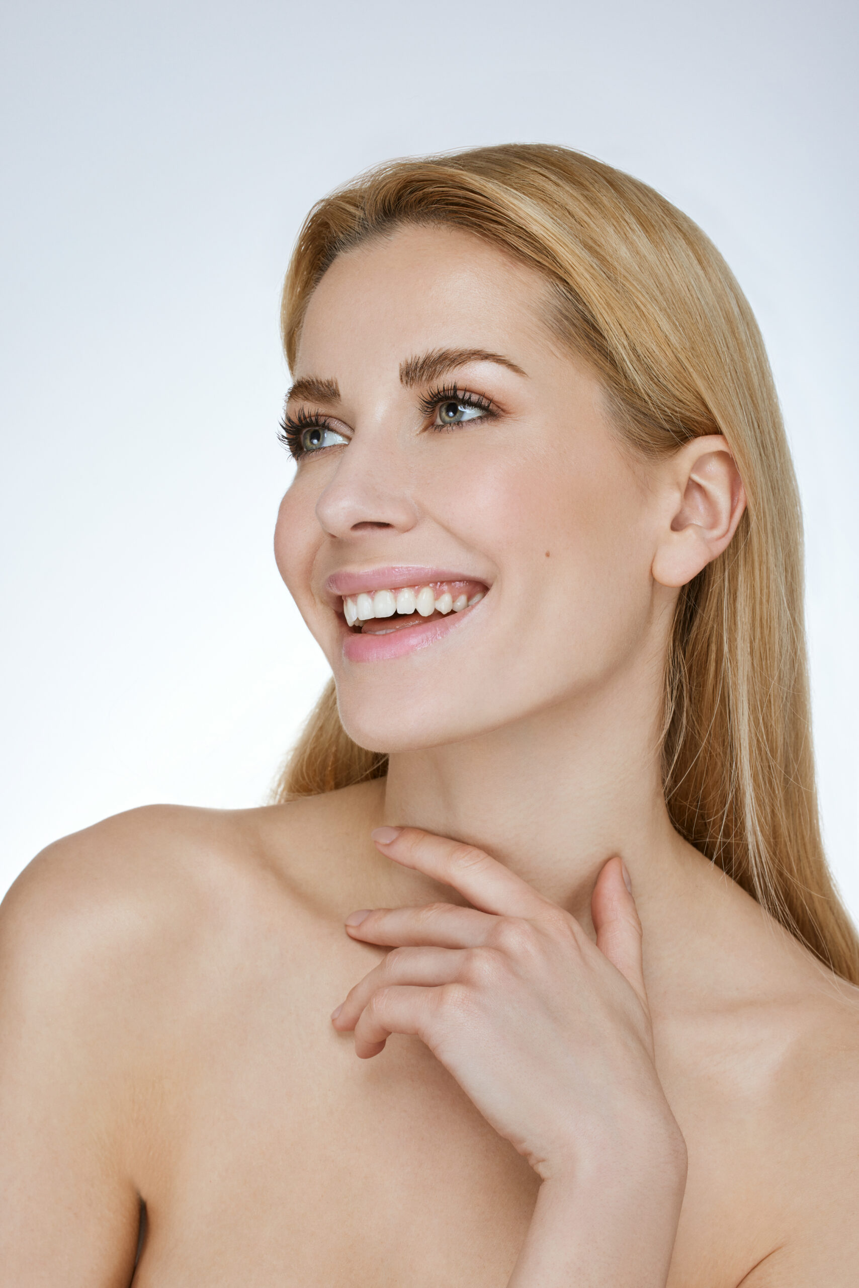 Erstellung eines frischen, gepflegten Looks für Hautpflege-Werbung. Fokus auf gesundem, makellosem Teint.