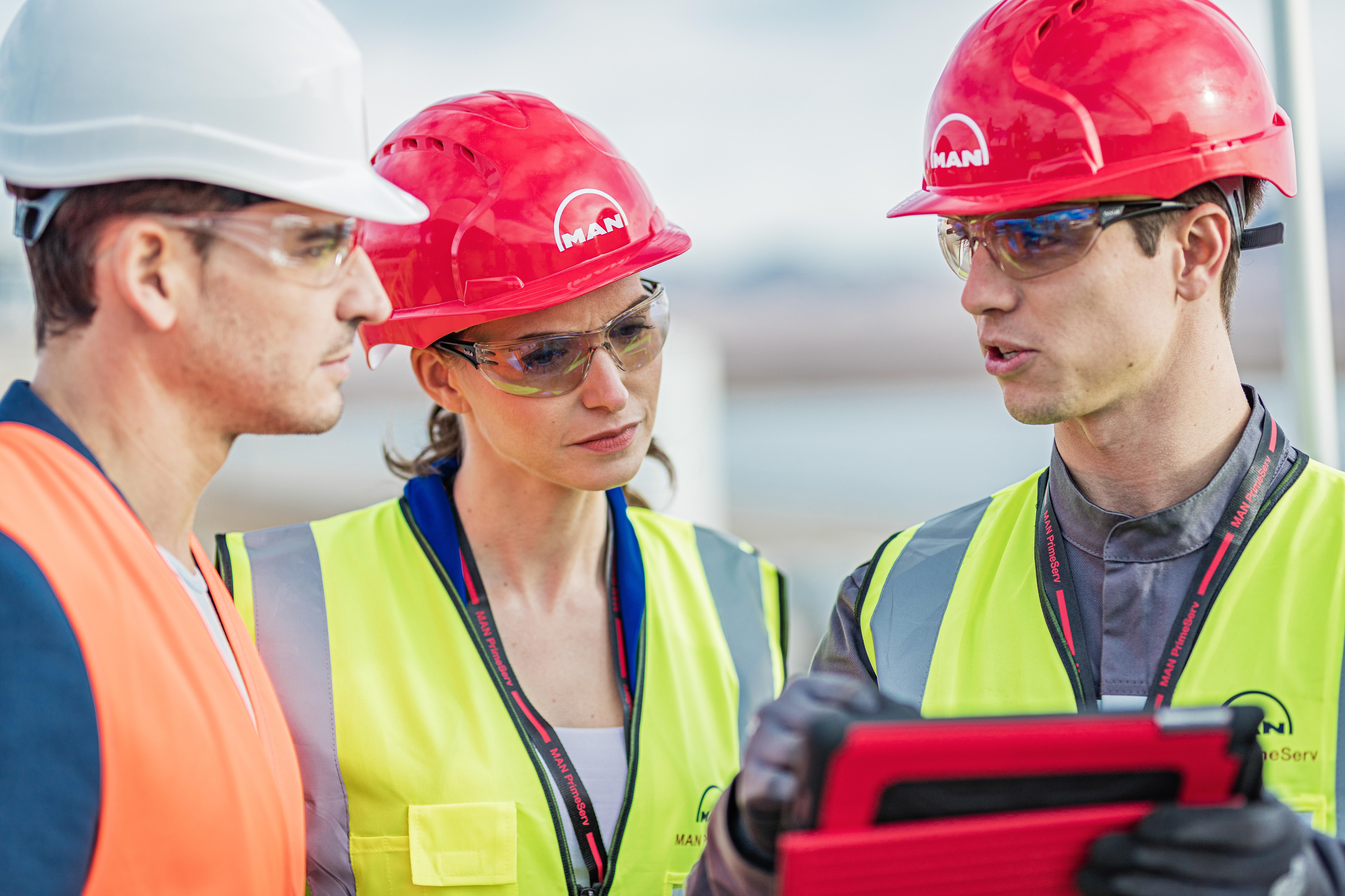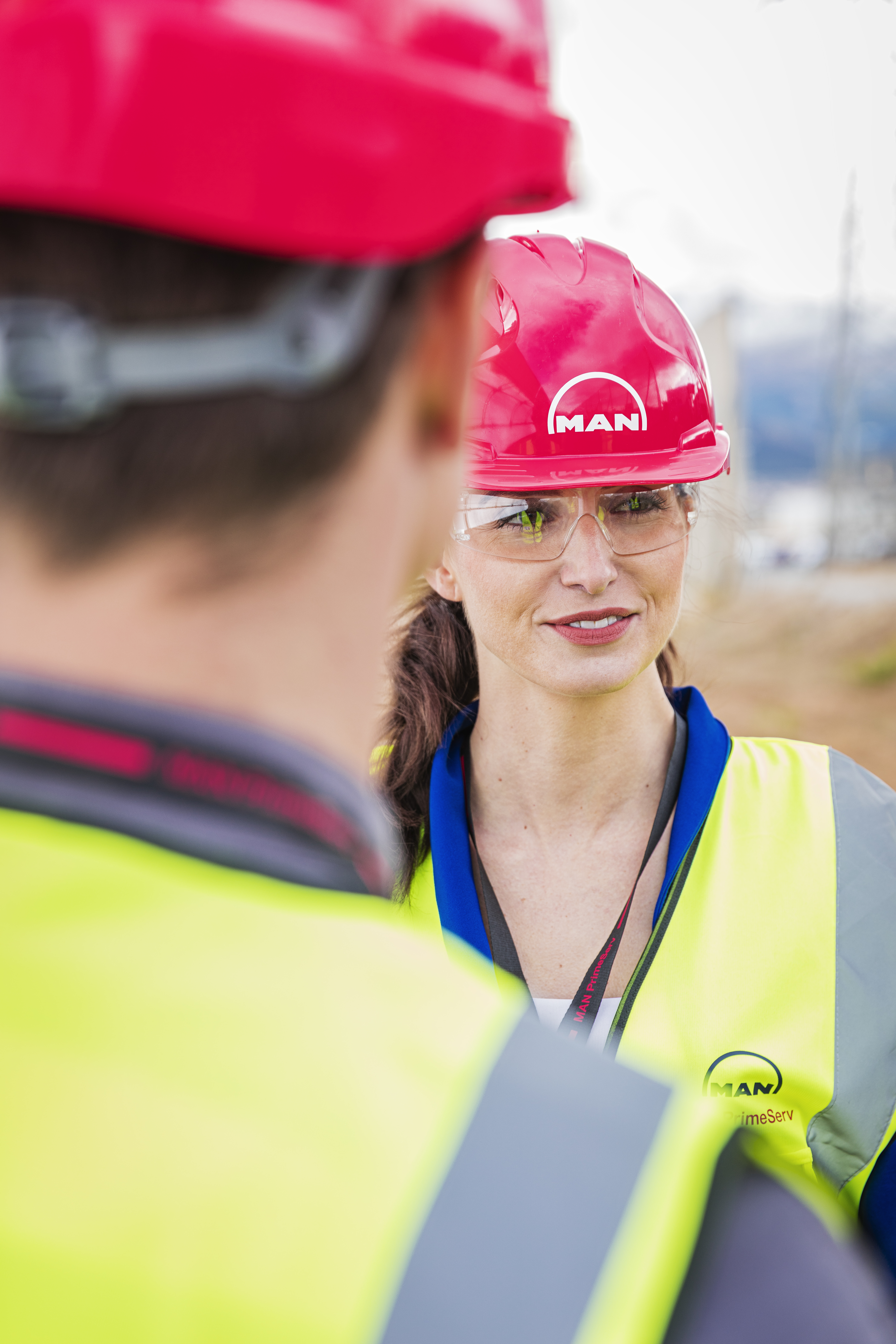 Die Haare bei dem Damenmodel sollten entsprechend der Bedingungen im Werk zu einem Zopf zusammengenommen sein. Die Herren sollten gepflegt und ansprechend aussehen. Zusätzlich mussten alle Modelle einen Helm tragen.