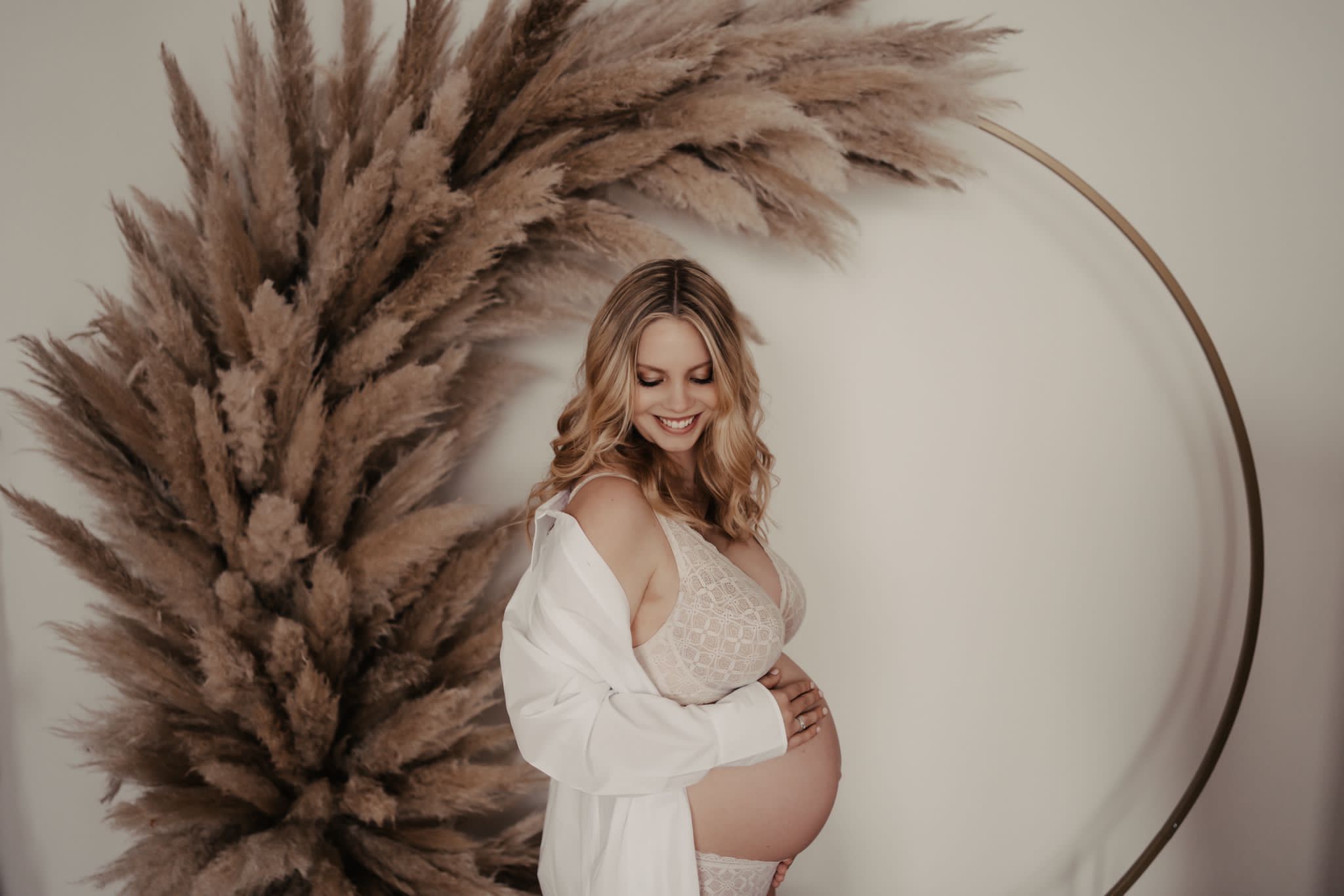 Für Babybauch-Fotos darf das Styling die Sinnlichkeit der werdenden Mutter sanft hervorheben – perfekt und individuell auf die Persönlichkeit, das Setting und die Lichtverhältnisse abgestimmt.