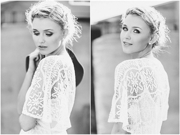 Das Make-Up unterstreicht den natürlichen Charme der Flechtfrisur. Ein strahlender Teint mit sanften Rosétönen und dezenten Highlights sorgt für Frische.